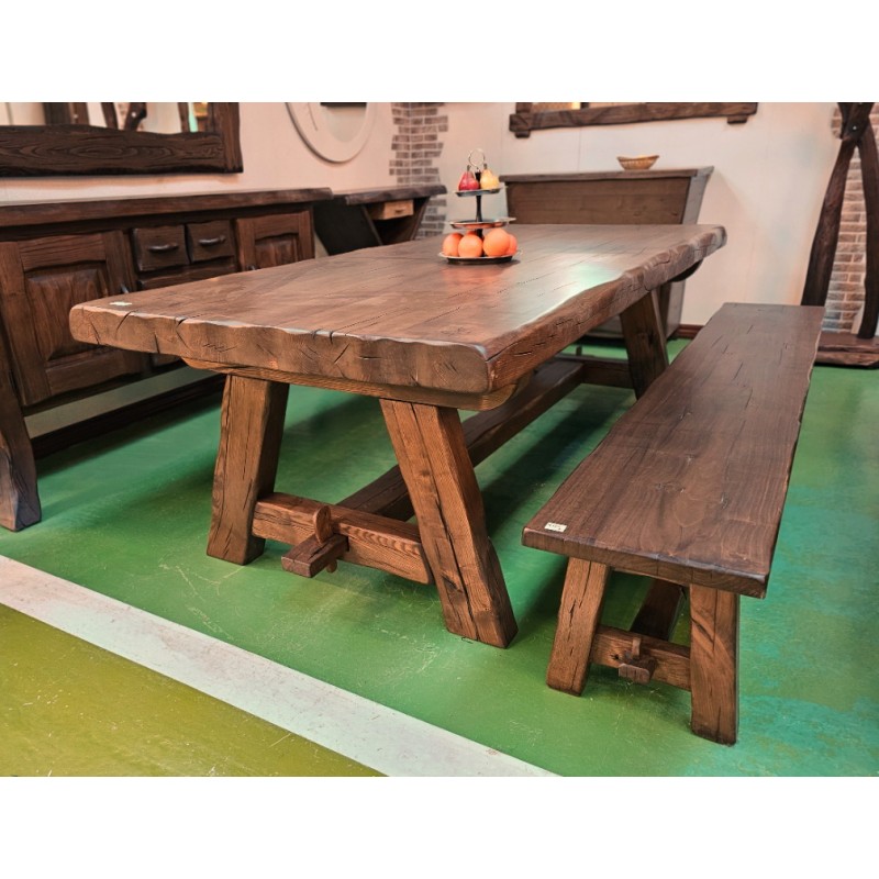 Fabulosa mesa de madera de castaño maciza de 2.5m. y un grosor de 8cm, una mesa robusta y pesada.