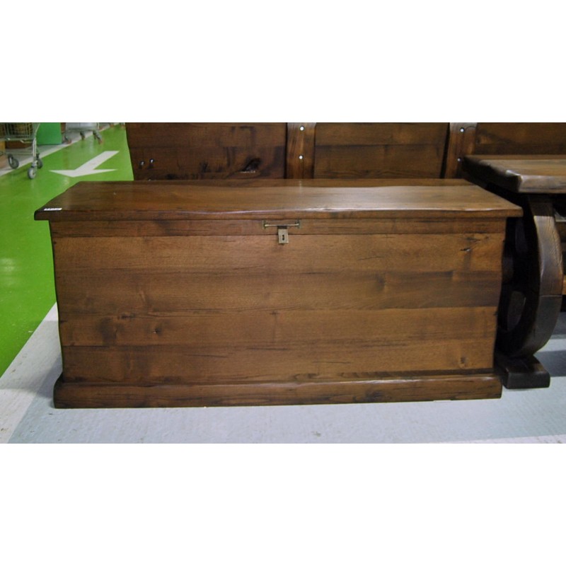Arcón en madera de castaño maciza, de gran capacidad y lineas simples. Dispone de cerradura para candado y cadena de seguridad para su correcto abatimiento.